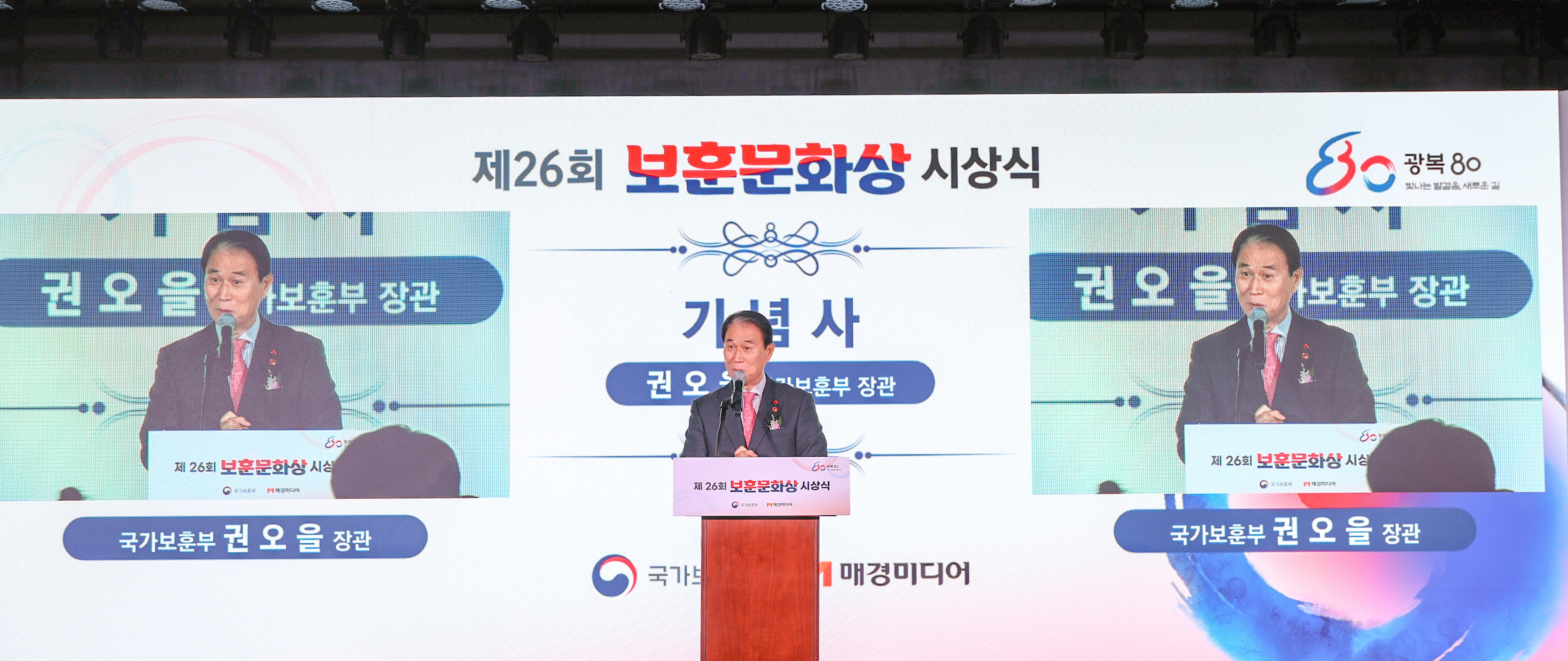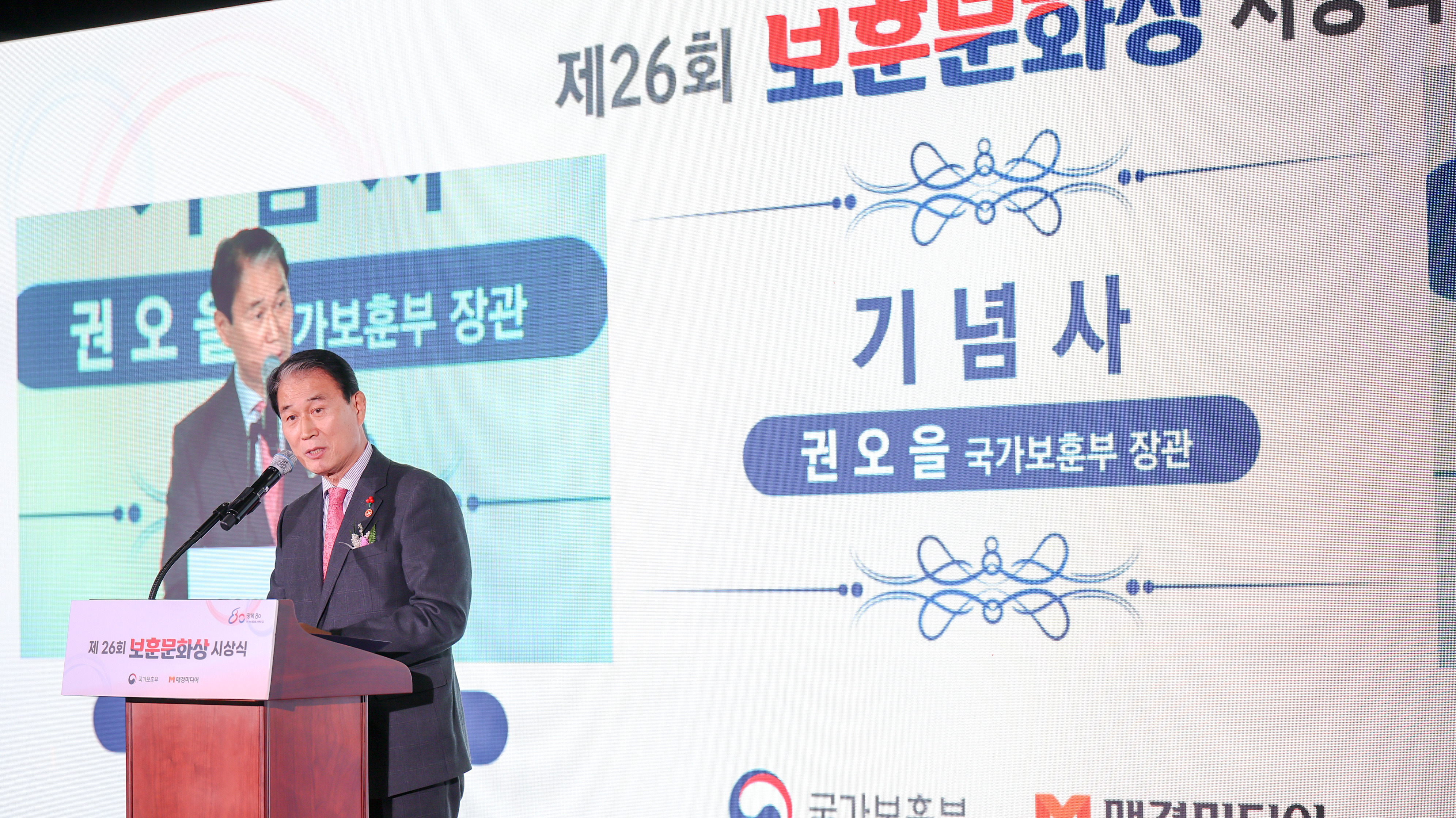 국가보훈부(국문) - 보훈사진관 상세보기 - 제목, 작성자, 부서, 연락처, 내용, 파일 정보 제공 제26회 보훈문화상 시상식 작성자 : 대변인실 부서 국가보훈부 연락처 권오을 국가보훈부 장관이 15일 오후 서울시 서대문구 대한민국임시정부기념관에서 열린 제26회 보훈문화상 시상식에 참석하여 기념사를 하고 있다. 파일 jpg 문서 사진1.jpg jpg 문서 사진2.jpg jpg 문서 사진3.jpg jpg 문서 사진4.jpg jpg 문서 사진5.jpg jpg 문서 사진6.jpg jpg 문서 사진7.jpg jpg 문서 사진8.jpg 목록 게시물삭제 삭제사유선택 광고 반복작성 욕설 본인삭제 관련없음 게시물삭제 이전글 한화에어로스페이스 히어로즈 패밀리 후원사업 성과공유회 다음글 25년 6·25전쟁 전사자 발굴유해 합동봉안식