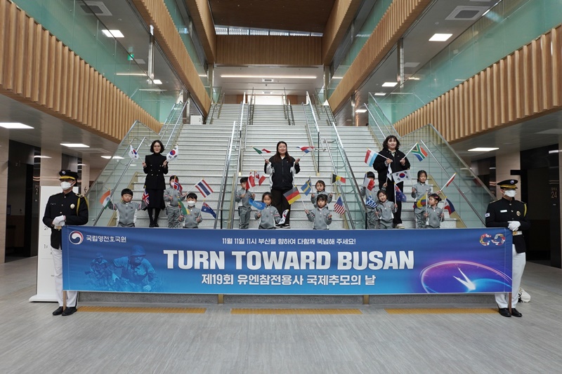 국립영천호국원(원장 정원희)에서는 '유엔참전용사 국제추모의 날' 인 11일 오전 영천별빛직장어린이집 원생이 방문하여, 6·25전쟁 UN참전국인 네덜란드군 특별사진전 관람 및 동영상 시청, UN군 참전국에게 감사메시지 엽서쓰기, '턴 투워드 부산' 부산을 향하여 1분간 묵념을 하며 추모와 감사의 뜻깊은 시간을 보냈습니다.