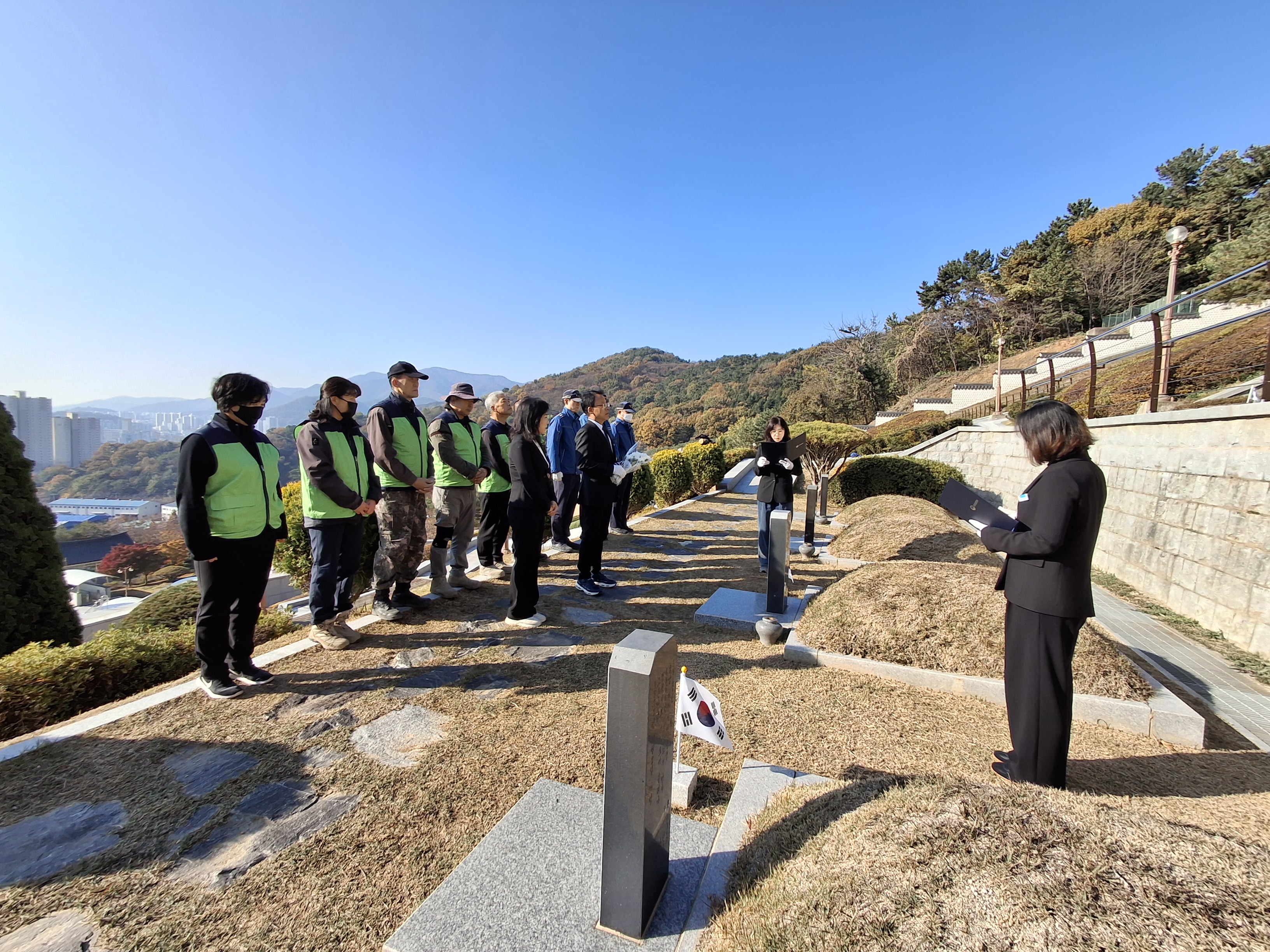 국립3·15민주묘지 - 포토갤러리 상세보기 - 제목, 내용, 파일 정보 제공 2025.11.20.무연고묘소 기일 참배(김동섭 열사) 2025.11.20.무연고묘소 기일 참배(김동섭 열사) 목록 게시물삭제 삭제사유선택 광고 반복작성 욕설 본인삭제 관련없음 게시물삭제 이전글 2025.11.20.39사단 119-1대대 다음글 2025.11.18. 39사단 창원1대대