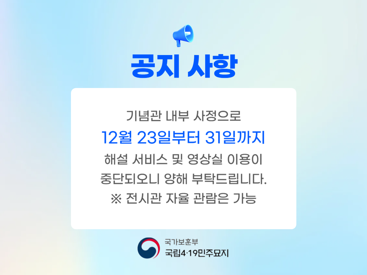 국립4.19민주묘지관리소 공무직(보훈해설사) 서류전형 합격자 발표 및 면접시험 공고