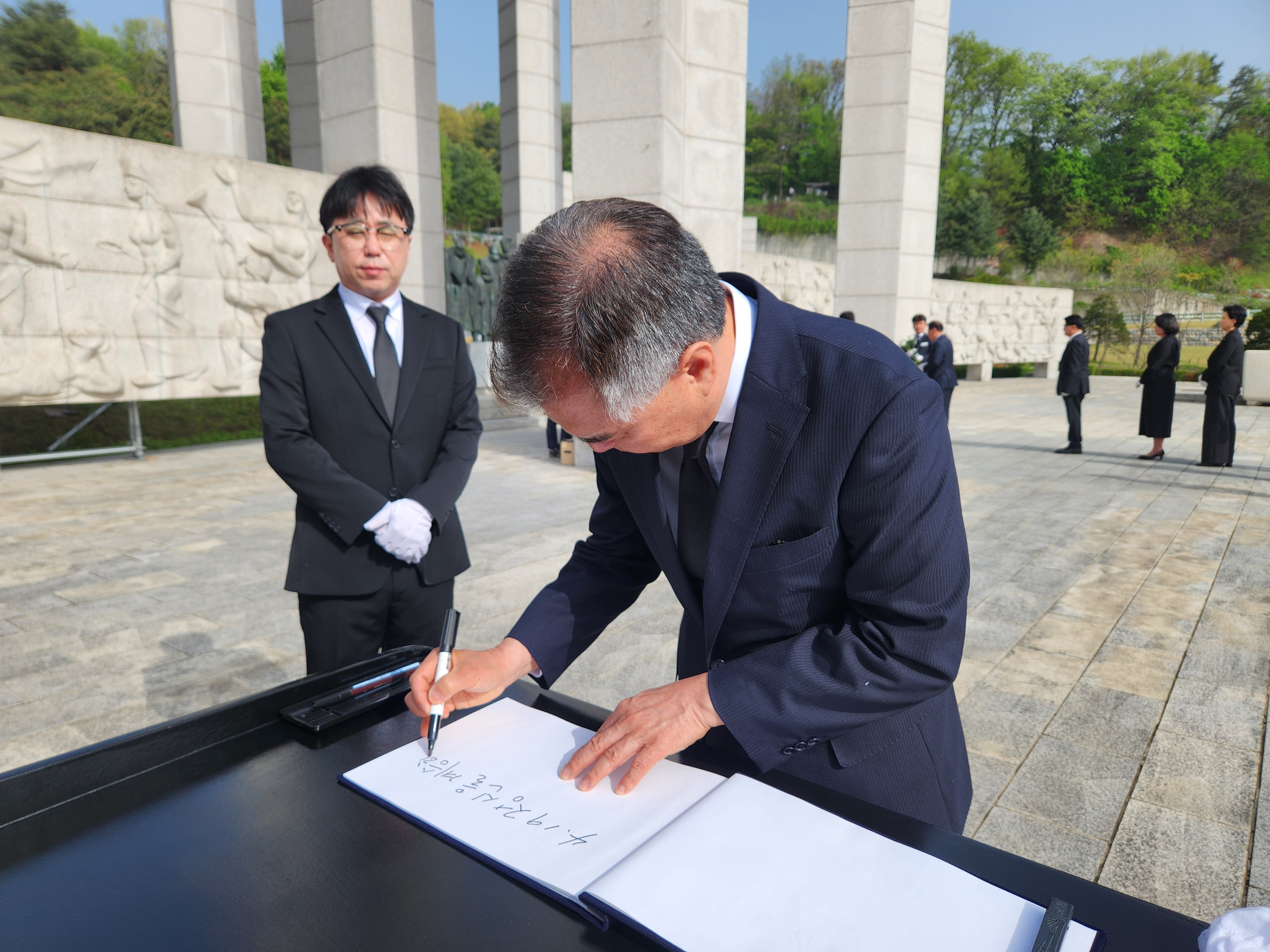 4월 17일 오전, 국립 4·19민주묘지를 방문하여 4·19희생영령들께 참배하였습니다.