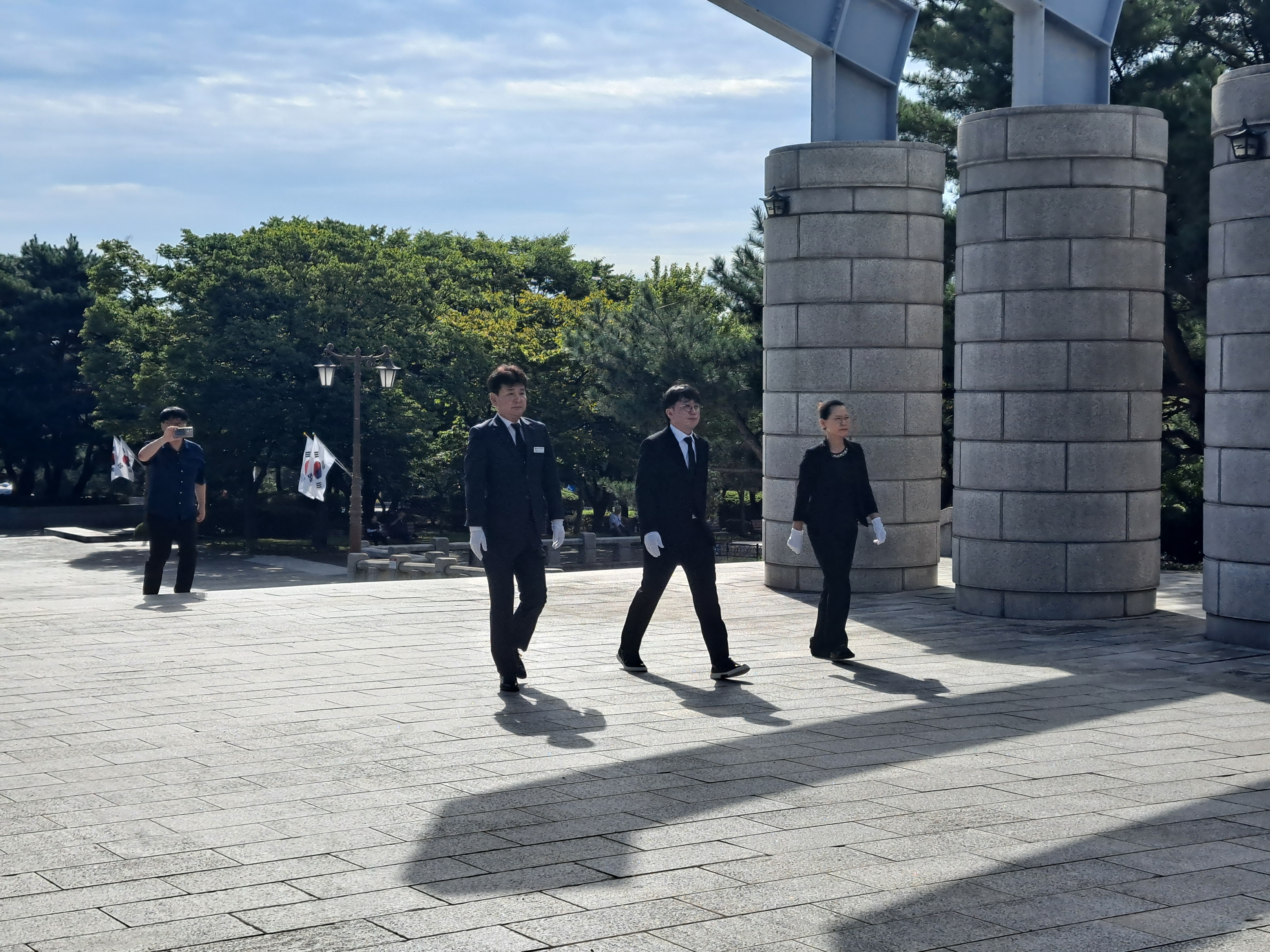 신임 윤우용 국립 4·19민주묘지 관리소장이 4·19혁명 영령께 참배를 마치고 취임식을 진행하였습니다.