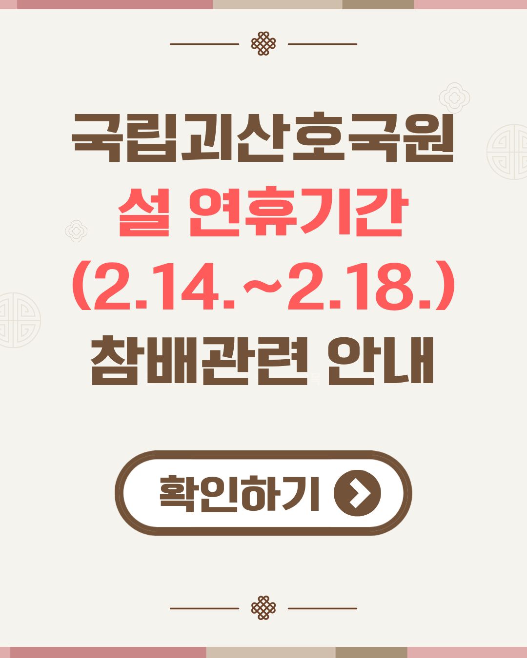 설 연휴기간(2.14.~2.18.) 참배관련 안내
