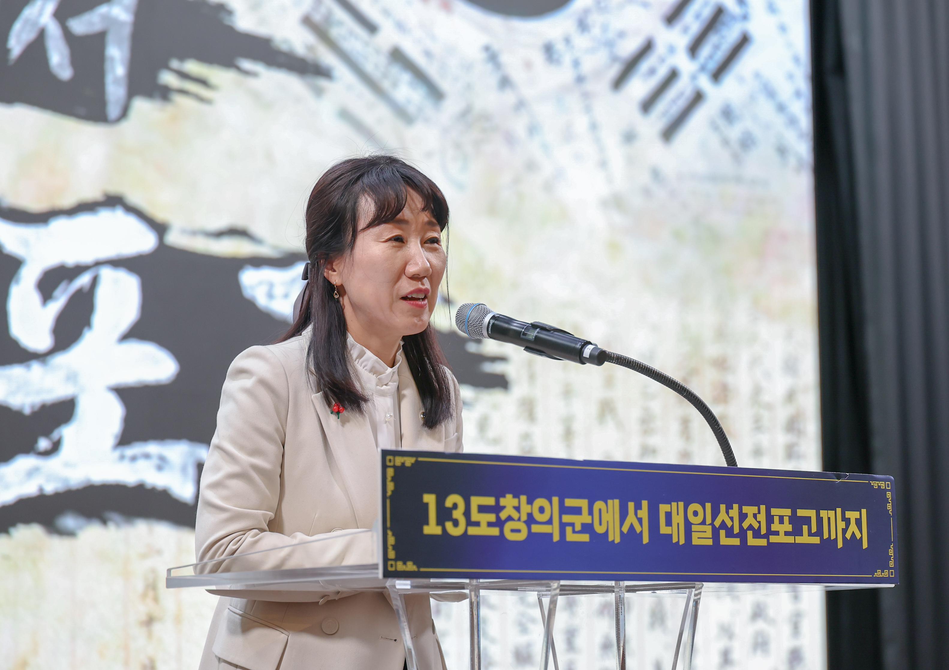 강윤진 국가보훈부 차관이 10일 오후 서울시 용산구 전쟁기념관에서 열린 13도창의군 기념행사에 참석하여 (사)왕산기념사업회에게 이달의 독립운동 선정패를 수여하고 있다.