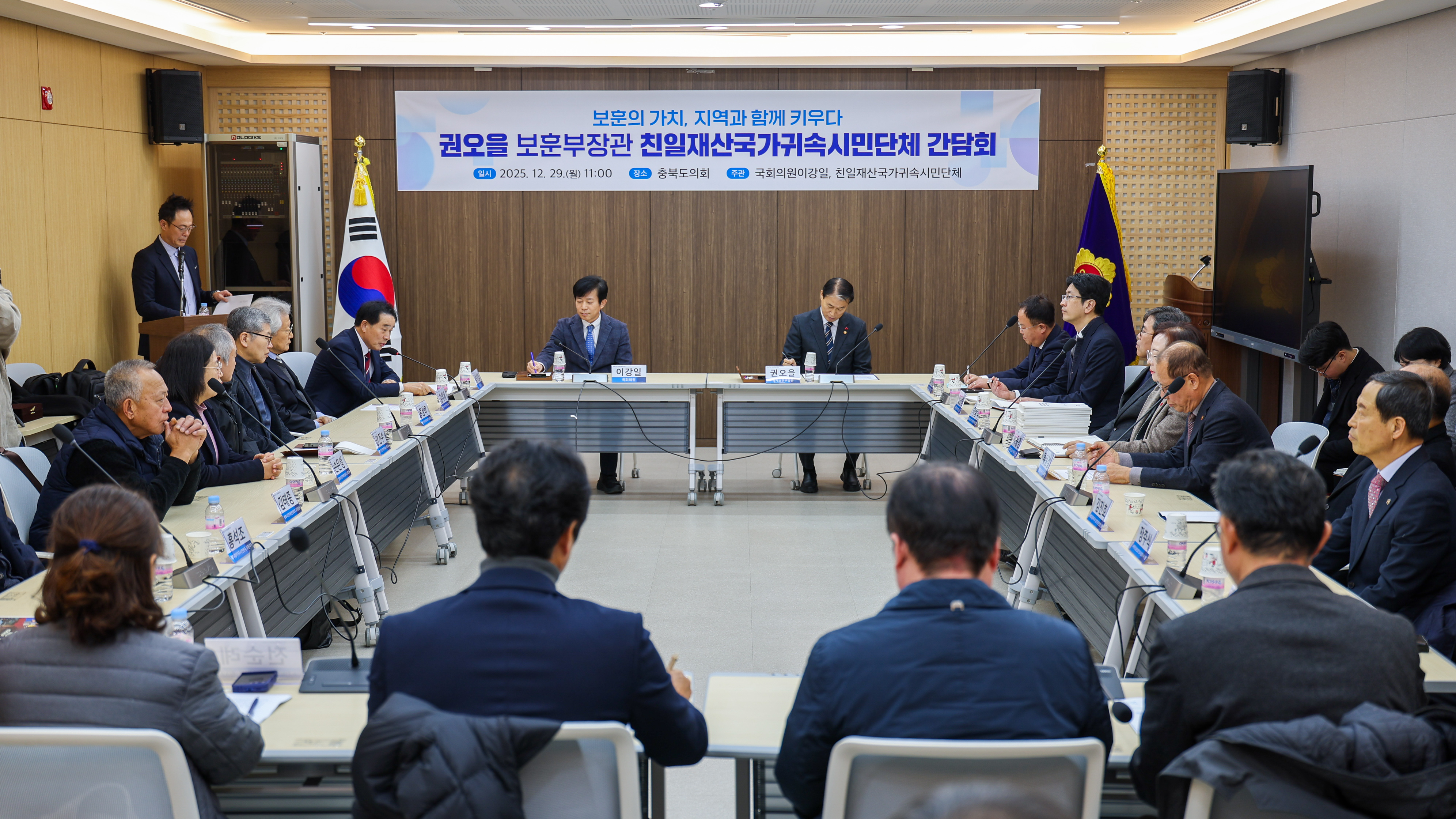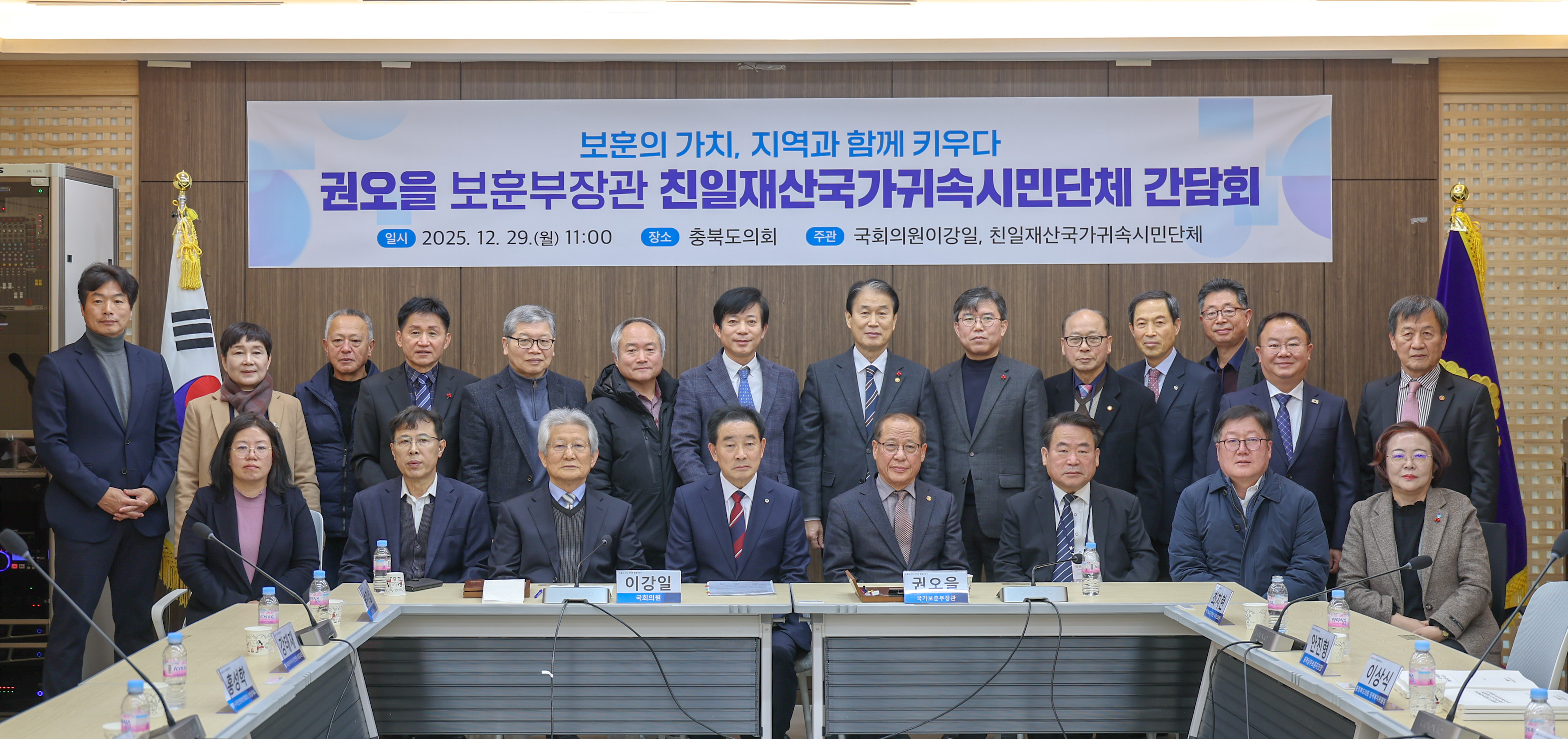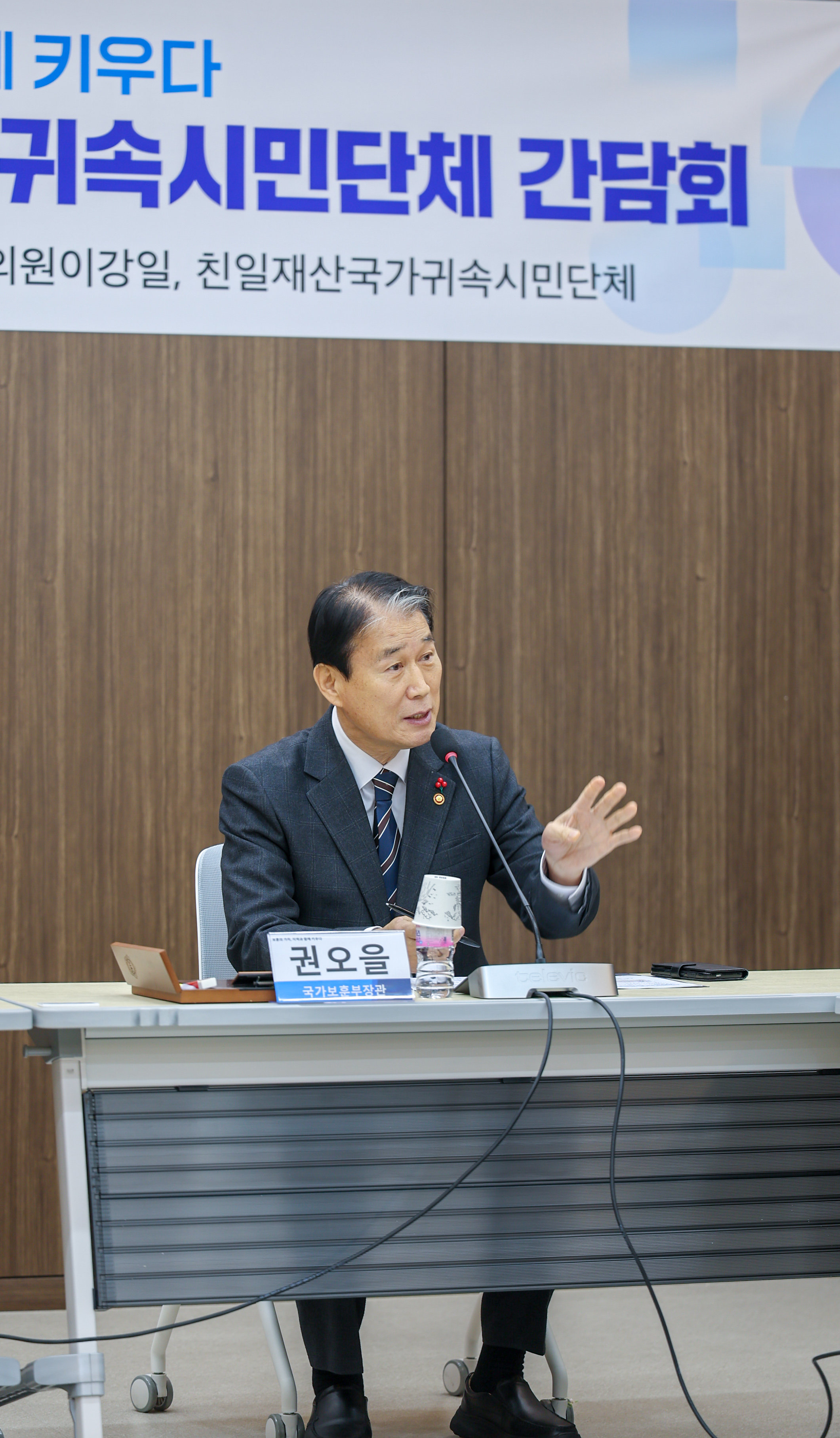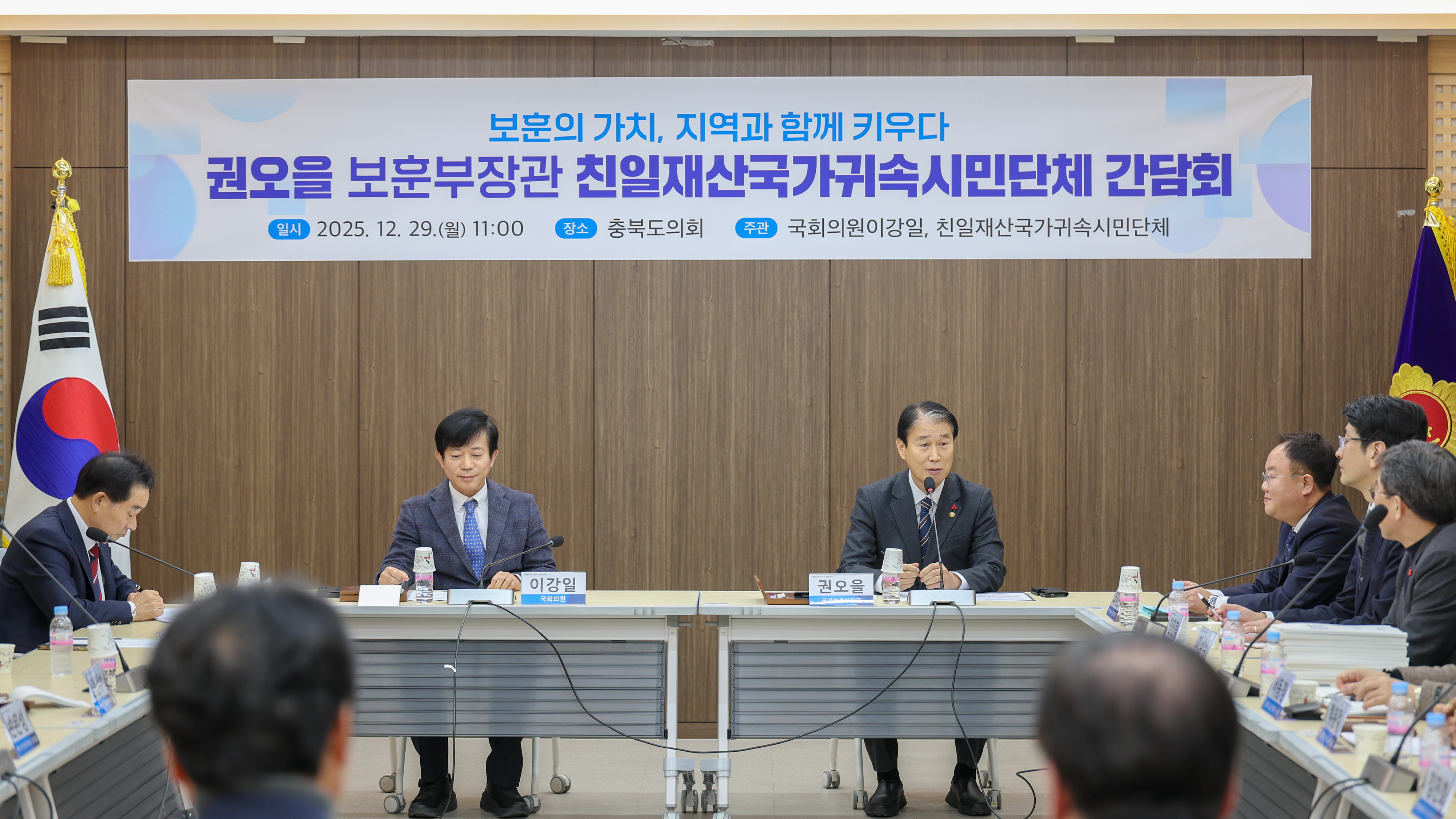 권오을 국가보훈부 장관이 29일 오전 충북 청주시 충북도의회에서 열린 친일재산귀속 관련 시민단체 간담회에 참석하여 기념사를 하고 있다.