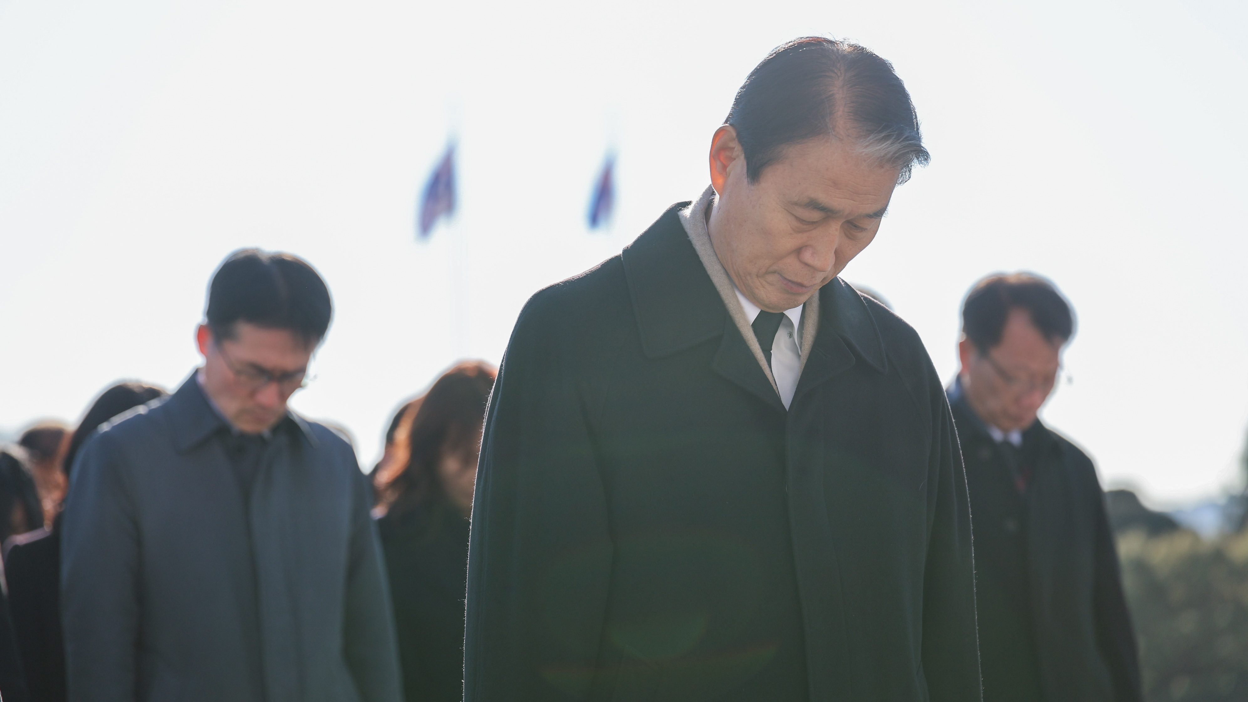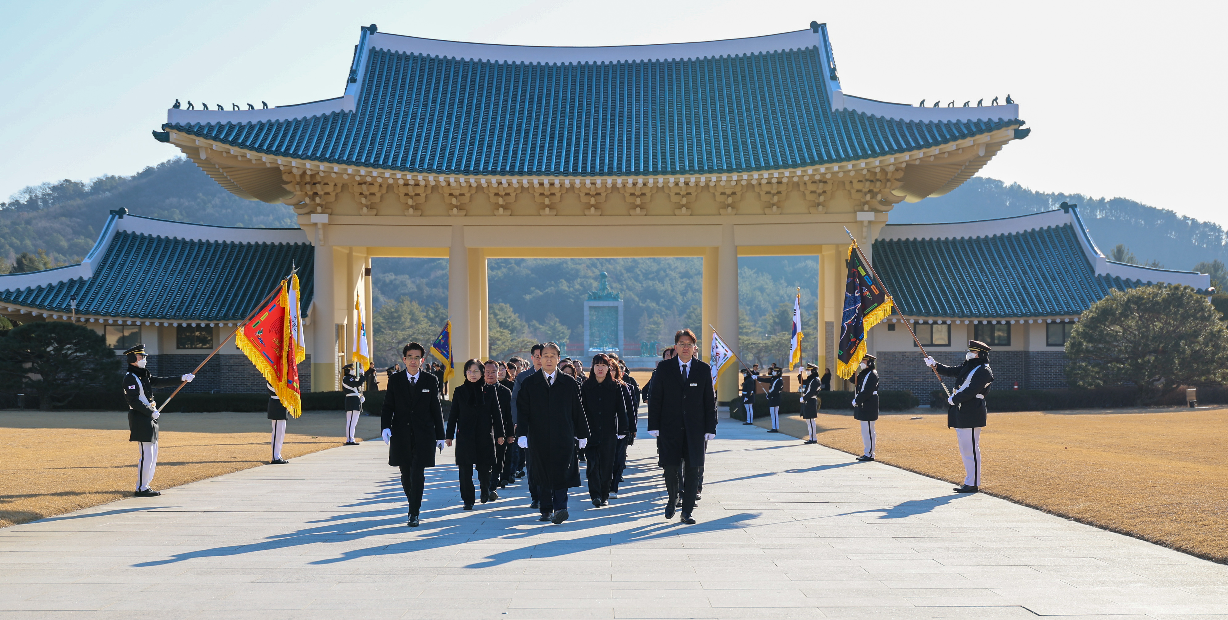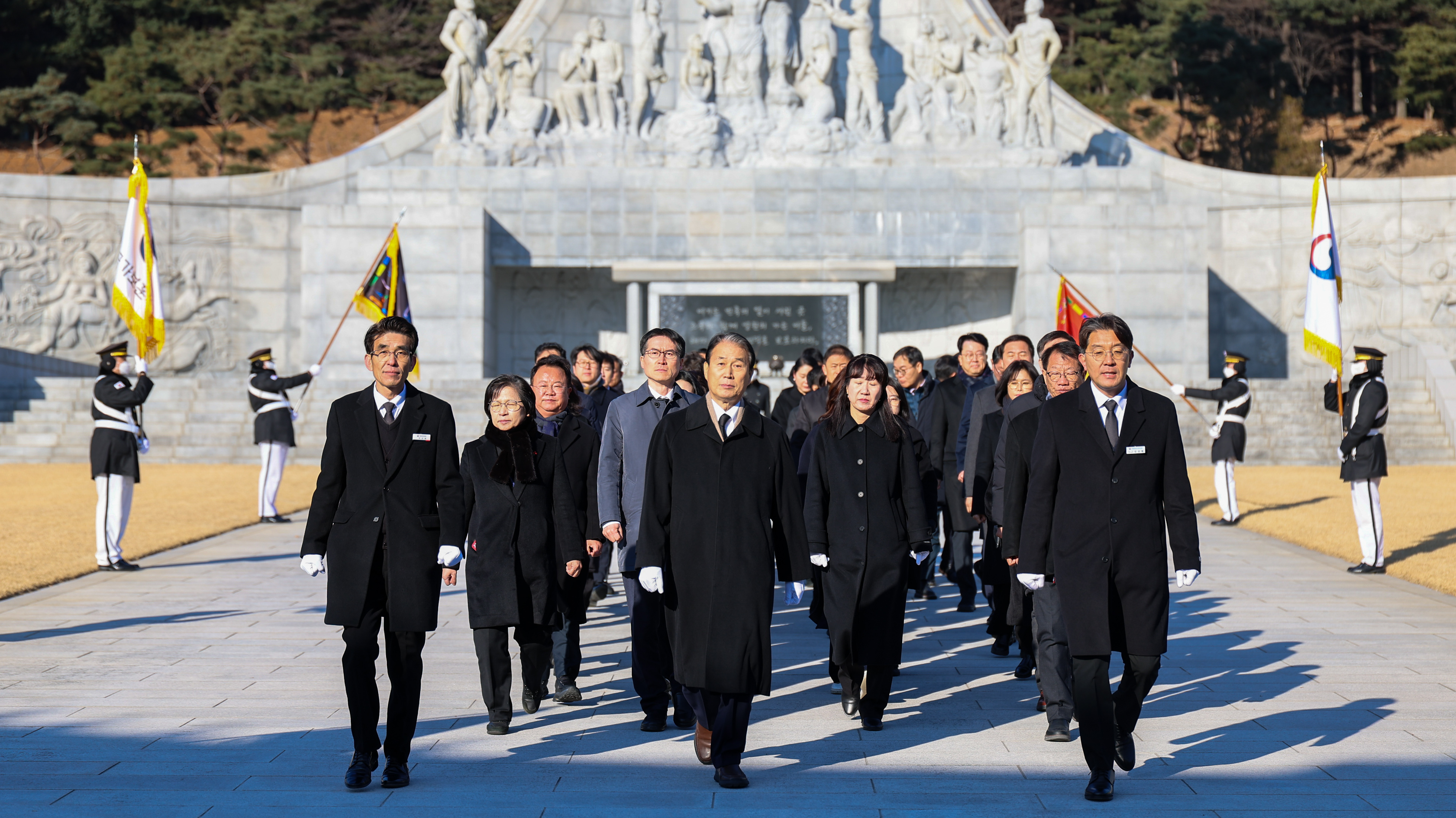 권오을 국가보훈부 장관이 국가보훈부 국장급 고위직공무원과 함께 새해를 맞아 2일 오전 대전 유성구 국립대전현충원을 방문하여 참배하고 있다.