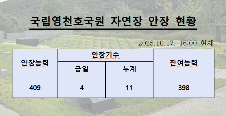 국립영천호국원 자연장 안장 현황 | |